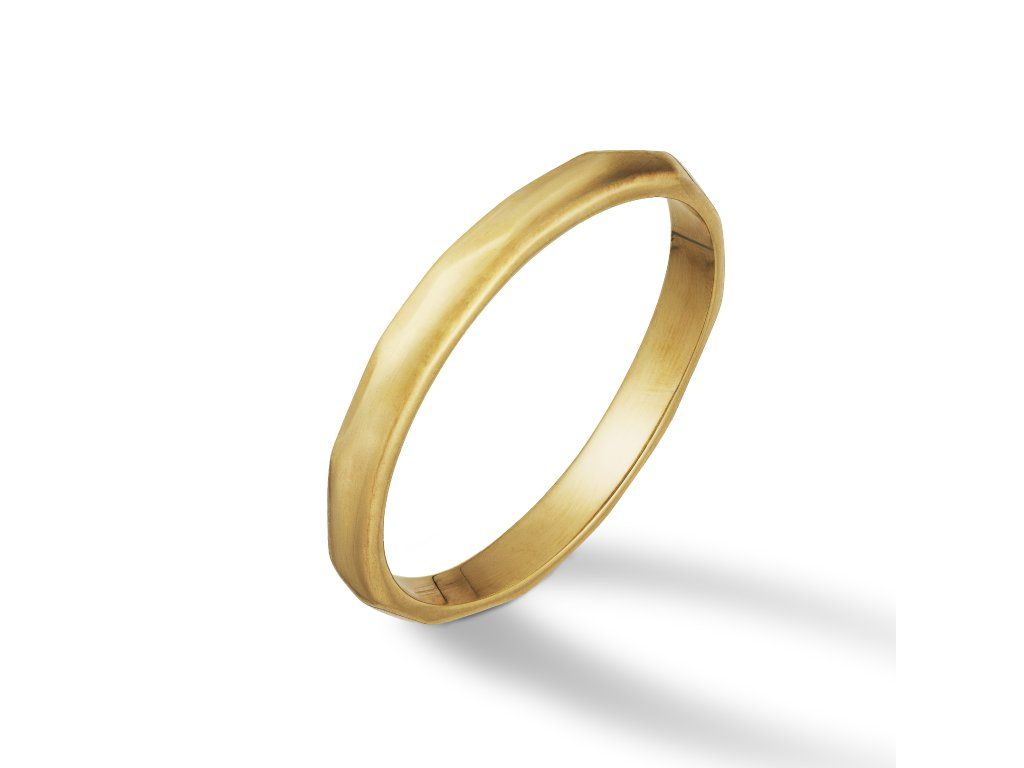 Tento snubní prsten ze žlutého zlata vznikl v rukou zlatníka, který mu vtiskl tvar, cit a osobnost. Každá ploška, každý lom světla vznikal poctivou ruční prací - pomalu, krok za krokem.