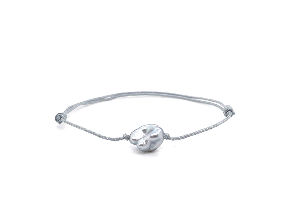 TAHPN22 náramek s perlou KESHI z Jižního moře na světle šedé šňůrce zlatnictvivymolovi.cz #perla#jizni#more#svetleseda#snurka#unisex#top#darek#