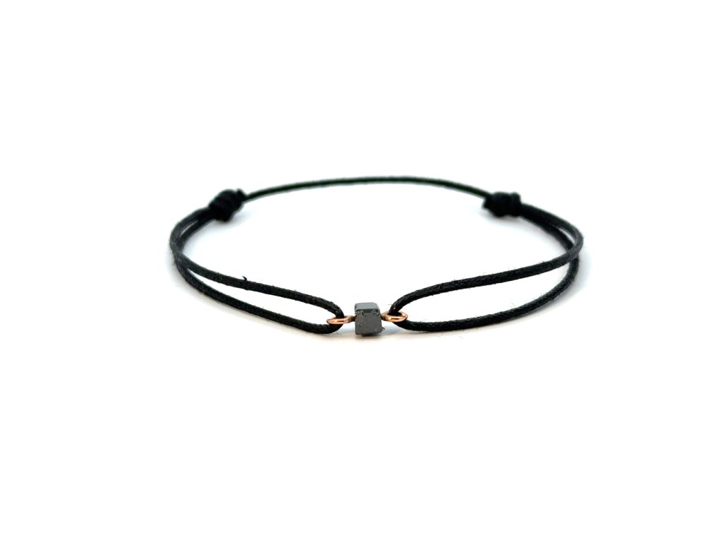 Náramek pánský i dámský - textilní šňůrka s raw-surovým diamantem a růžové zlato Dárková krabička s certifikátem o pravosti raw diamantu i zlata zdarma