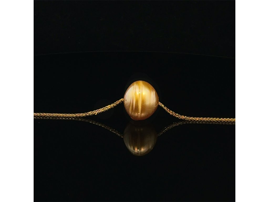 Krásu perly a její výjimečnou barvu dokonale doplňuje jemný řetízek ze žlutého zlata. Řetízek ze žlutého zlata dokonale doplňuje její nádhernou barvu a dává vyniknout její výjimečně kráse.